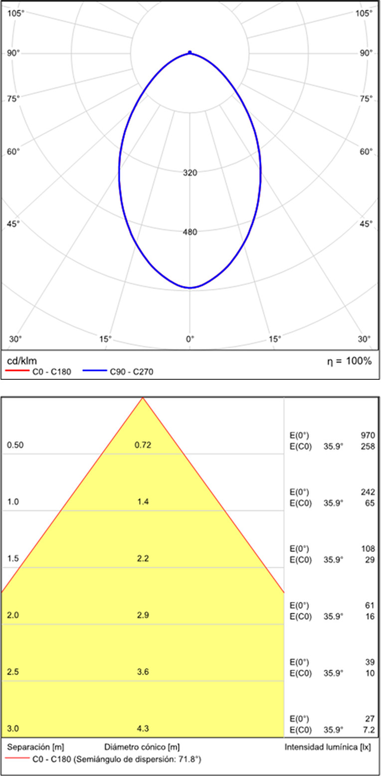 | Współczynnik UGR: | <16 (niski poziom olśnienia) |