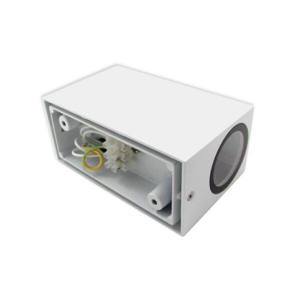 Stylowy kinkiet zewnętrzny z dwukierunkowym rozsyłem światła (góra–dół), wykonany z wytrzymałego aluminium i szkła hartowanego.