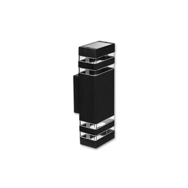 Kinkiet INEZ II 2xGU10 IP65 Czarny (RAL 9005) to nowoczesna oprawa elewacyjna stworzona z myślą o zewnętrznym oświetleniu ścian budynków.
