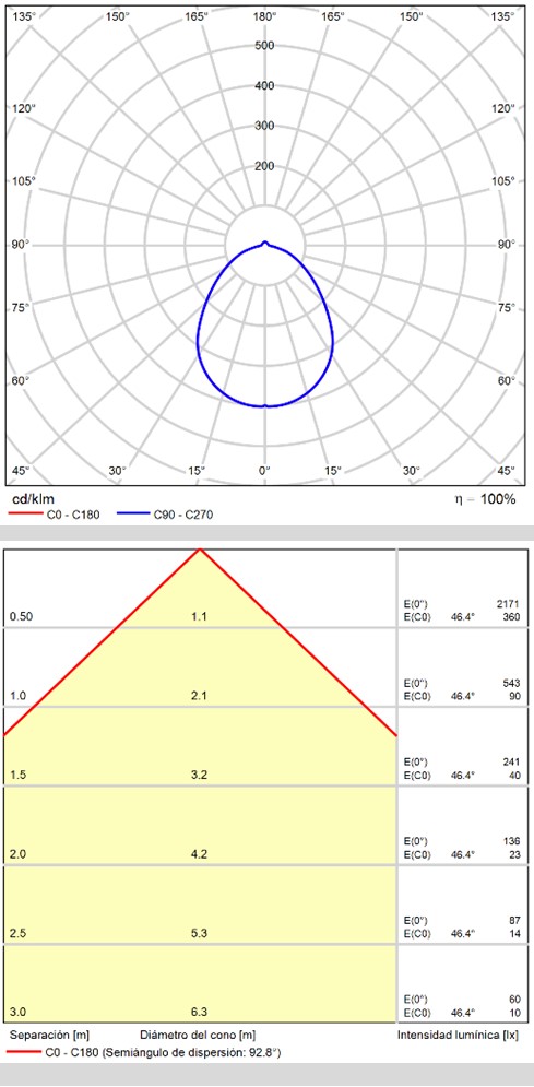 | Kąt świecenia | 90° |