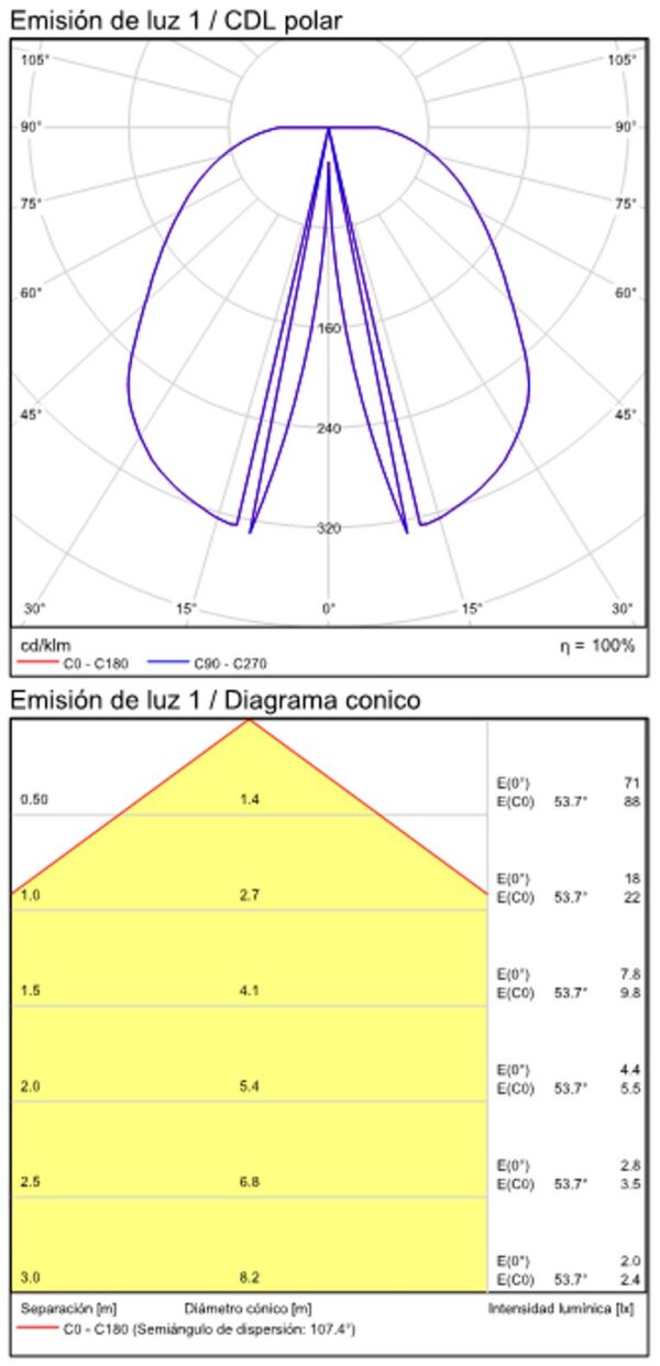 • Współczynnik olśnienia (UGR): Poniżej 19, zapewniający wysoki komfort wizualny