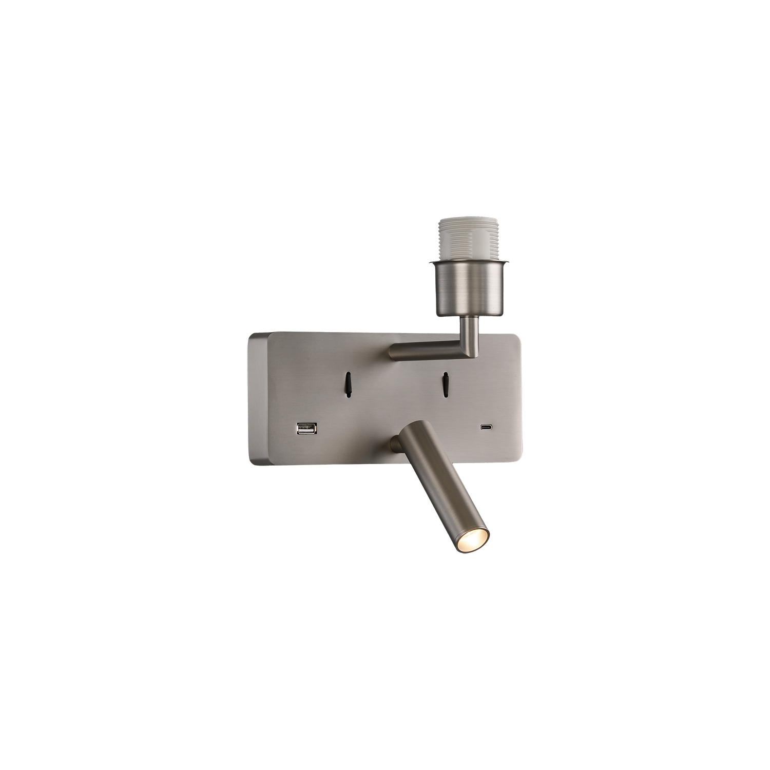 | A3971081NMSP | Nikiel Matowy | 1 x LED E27 15W | 1 x LED 3W, 3000K, 285lm, CRI90, Kąt: 15° | Dwa włączniki, Z portami USB, USB-C, Regulowane, Bez abażuru | 200x90x28 | Zobacz | Pobierz |