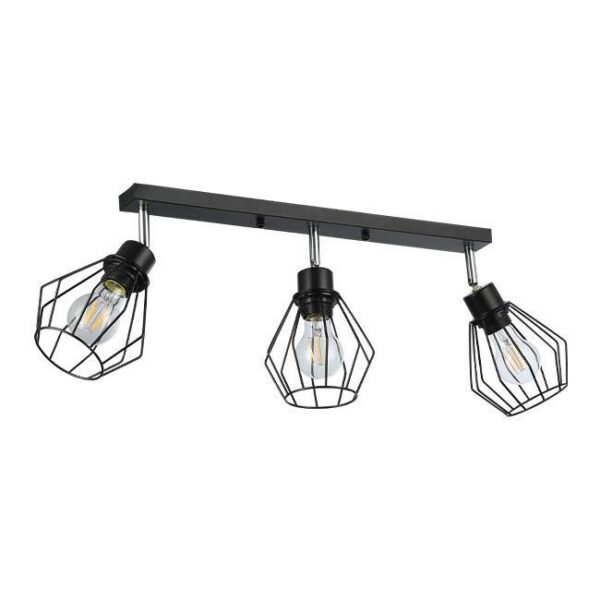 Oprawa została wyposażona w trzy gniazda E27 (żarówki LED do 35W – brak w zestawie), co pozwala na indywidualny dobór mocy i barwy światła. Klosze o wymiarach Ø140 x 140 mm zapewniają mocne, ale równomierne oświetlenie, a funkcja regulacji – obrót do 350° i wychylenie w pionie do 90° – umożliwia skierowanie światła w wybrane miejsce.