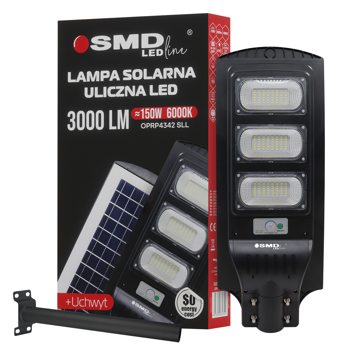Lampa uliczna solarna LED 150W marki SMD LEDline to nowoczesne i energooszczędne źródło światła, idealne do oświetlania ogrodów, posesji, bram wjazdowych, placów, parkingów oraz dróg. Dzięki zasilaniu energią słoneczną zapewnia zerowe koszty eksploatacji i nie wymaga skomplikowanej instalacji elektrycznej.