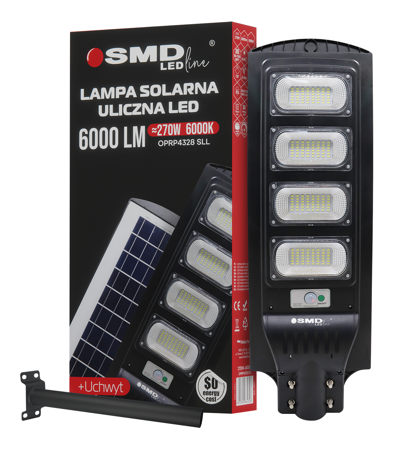Lampa uliczna solarna LED 270W marki SMD LEDline to wydajne i nowoczesne źródło światła, idealne do oświetlania placów, parkingów, dróg, ogrodów, bram wjazdowych czy posesji. Dzięki zasilaniu energią słoneczną zapewnia zerowe koszty eksploatacji oraz eliminuje konieczność wykonywania skomplikowanej instalacji elektrycznej.