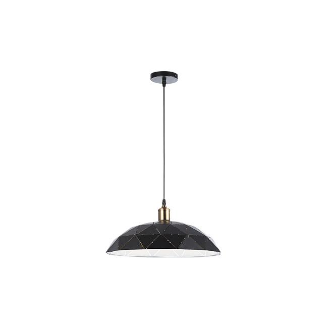 Stylowa lampa wisząca o nowoczesnym designie, wykonana ze stali i wykończona w eleganckim połączeniu czerni oraz miedzi. Geometryczny klosz o szerokiej średnicy tworzy wyjątkowy efekt wizualny i zapewnia szerokie, równomierne oświetlenie. Doskonale sprawdzi się jako centralne źródło światła w jadalni, salonie, nad wyspą kuchenną czy w przestrzeni komercyjnej.