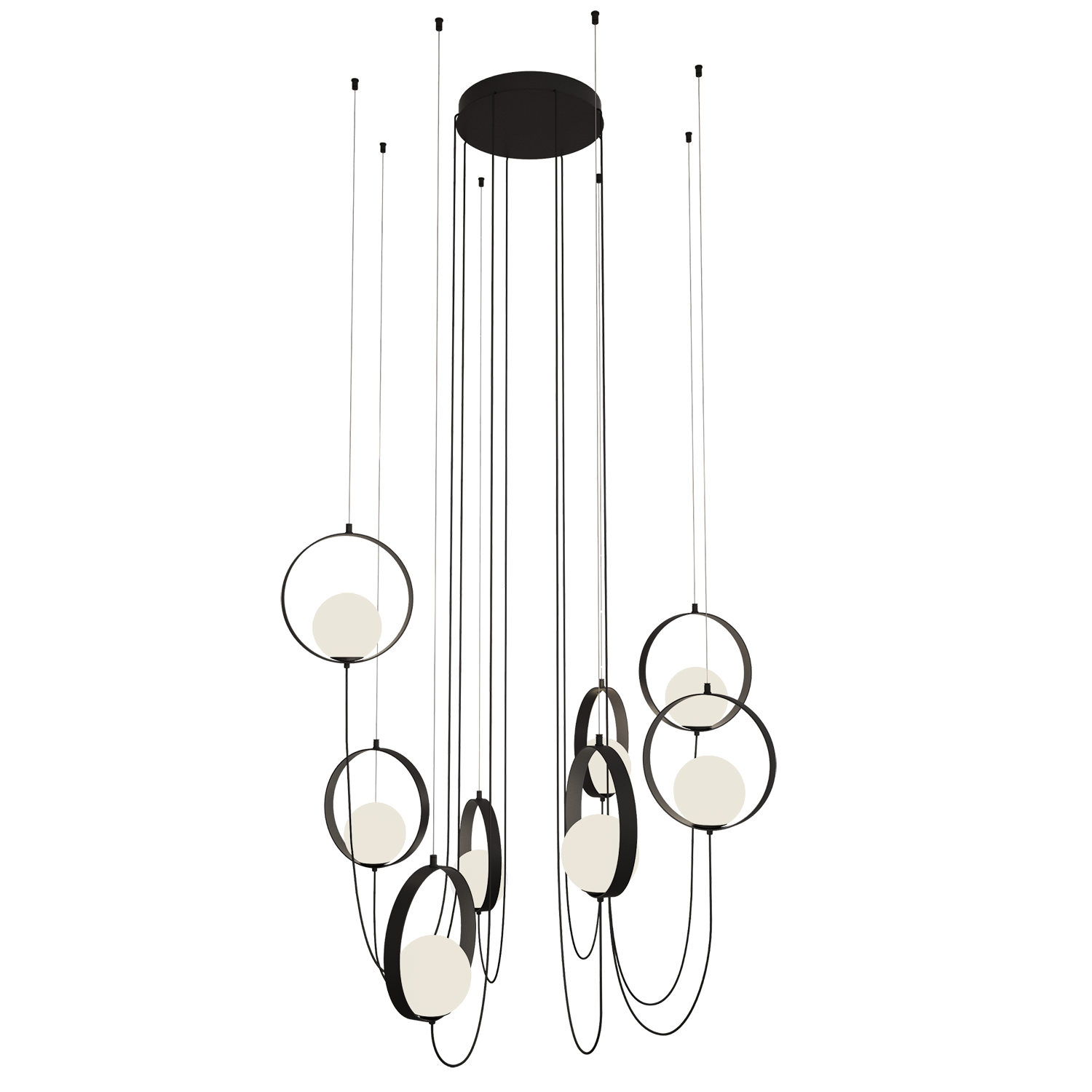 Kolekcja lamp wiszących Halo to esencja nowoczesnego designu połączonego z funkcjonalnością. Charakteryzuje się eleganckimi, kulistymi kloszami z opalowego szkła, zawieszonymi na delikatnych linkach, co tworzy efekt lekkości i wyrafinowania. Lampy Halo są dostępne w wariantach z jedną, czterema lub ośmioma kulami, co pozwala na stworzenie idealnego oświetlenia zarówno w kameralnych, jak i przestronnych wnętrzach. Wyposażone w zintegrowane, energooszczędne diody LED z możliwością regulacji barwy światła, oferują wszechstronne zastosowanie w każdym pomieszczeniu.