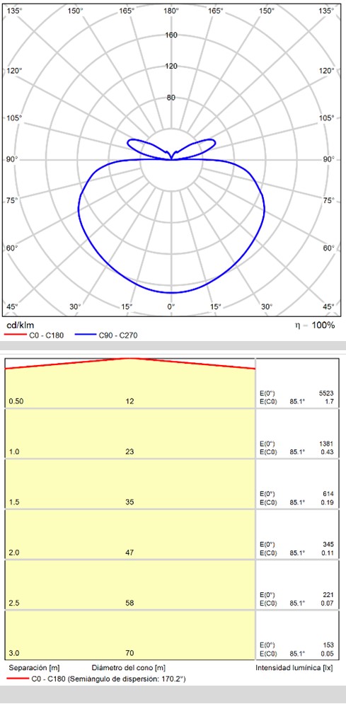 • Kąt rozsyłu światła: 150ş