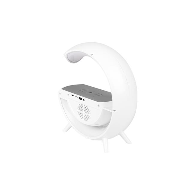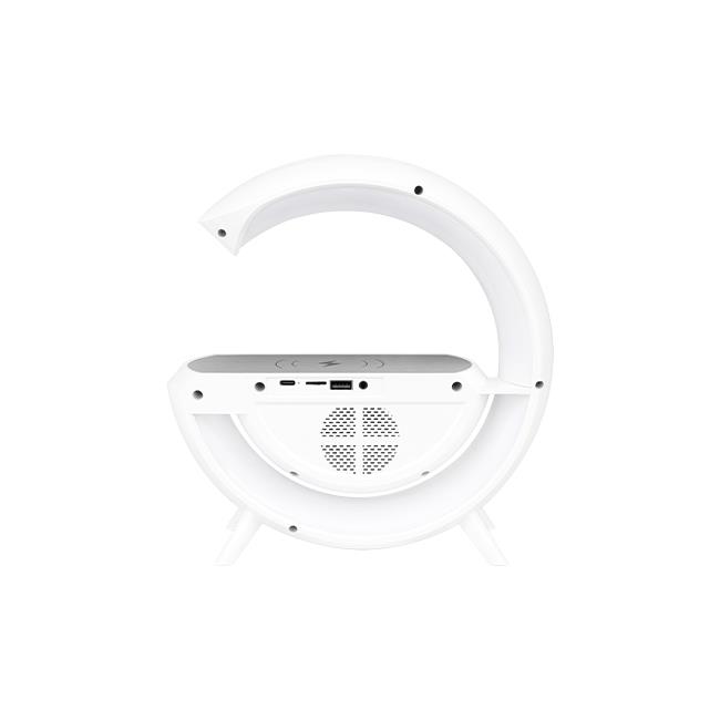 Nowoczesna lampka biurkowa w kształcie litery „G” to funkcjonalne połączenie oświetlenia LED, głośnika Bluetooth oraz ładowarki indukcyjnej. Dzięki wyjątkowemu designowi i wielu praktycznym funkcjom stanie się nie tylko źródłem światła, ale również centrum rozrywki i codziennego użytku.