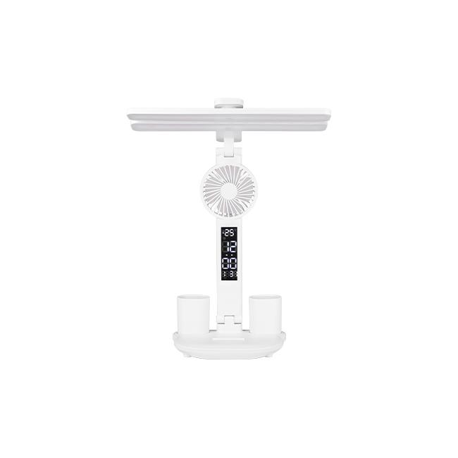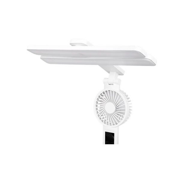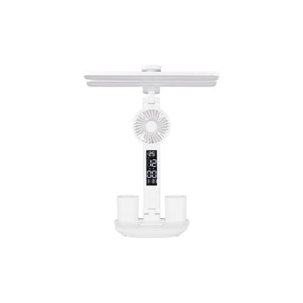 Nowoczesna lampka biurkowa LED z funkcją zmiany barwy światła, wentylatorem i praktycznym wyświetlaczem. Idealna do nauki, pracy oraz codziennego użytkowania, zapewnia komfortowe oświetlenie i dodatkowe funkcje poprawiające wygodę.