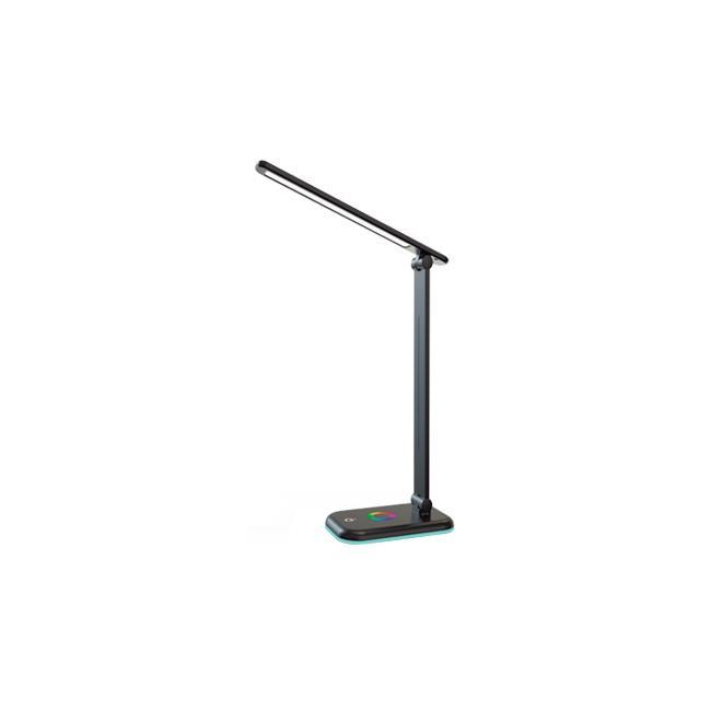 Lampka biurkowa czarna 12W LED RGB+CCT ALMA to nowoczesne źródło światła, które łączy wysoką funkcjonalność z eleganckim designem. Dzięki możliwości regulacji barwy CCT i podświetlanej podstawie RGB, idealnie sprawdzi się w pracy, nauce czy jako element dekoracyjny.