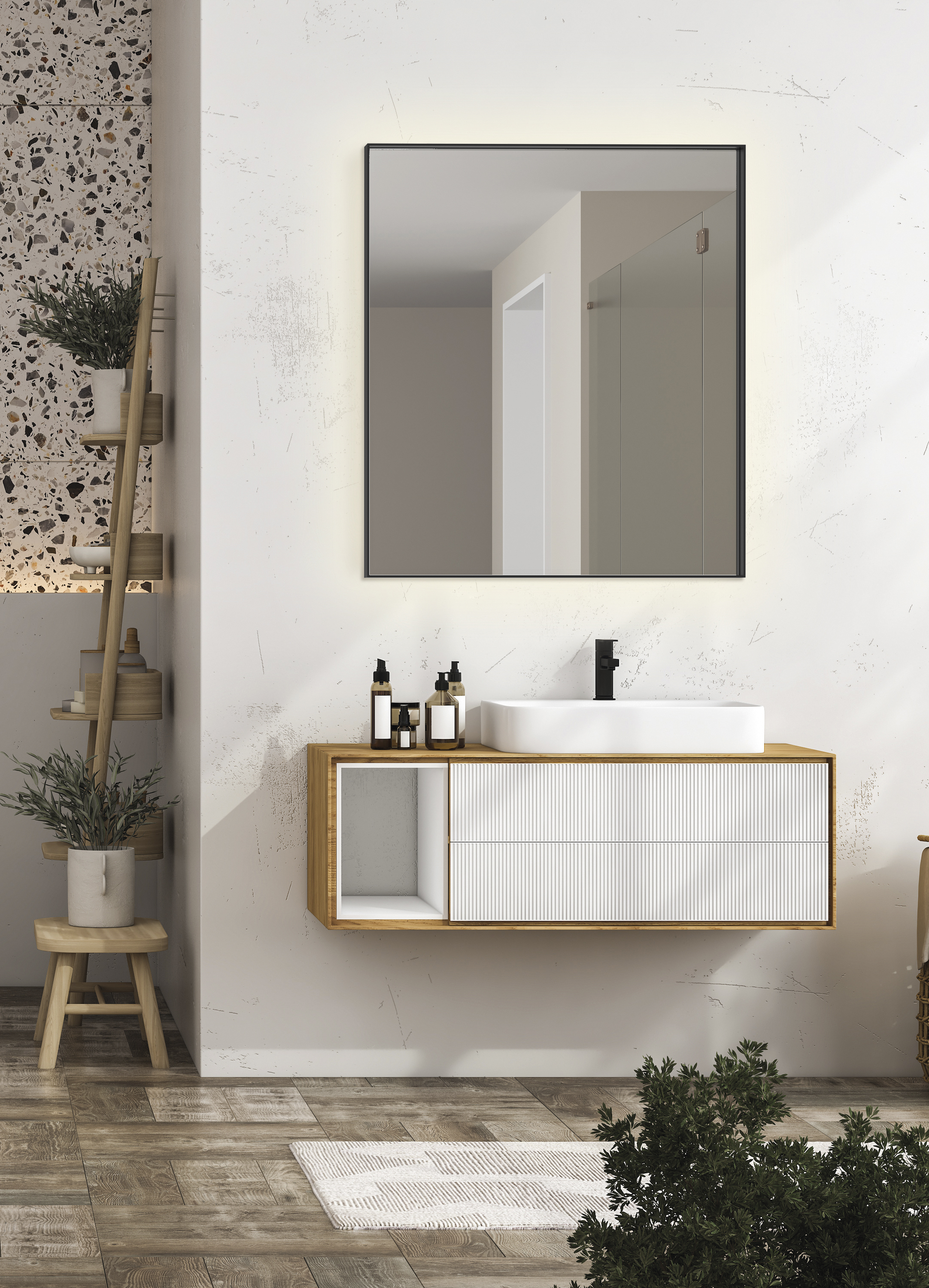 Kolekcja Oristano oferuje warianty zarówno bez oświetlenia, dla tych, którzy cenią sobie klasyczną prostotę, jak i z zintegrowanym oświetleniem LED, które zapewnia optymalne warunki świetlne oraz dodaje wnętrzu nowoczesnego charakteru.