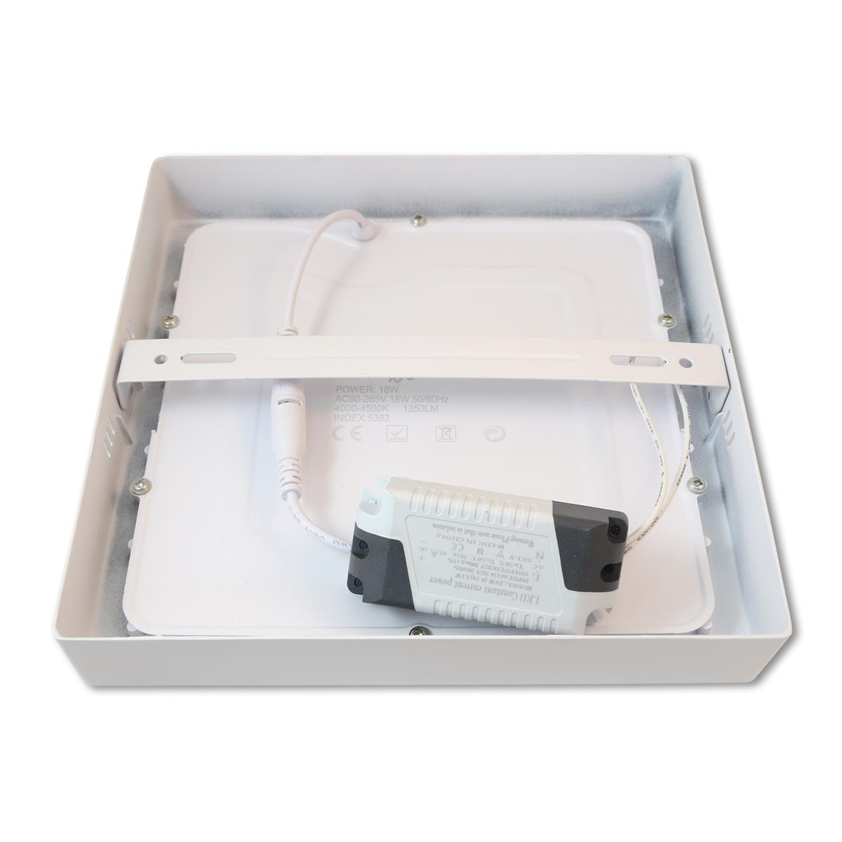 Nowoczesny panel LED PROMA SQUARE o mocy 18W to efektywne i energooszczędne źródło światła, które zapewnia jasne i chłodne światło o barwie 6200–6700 K.