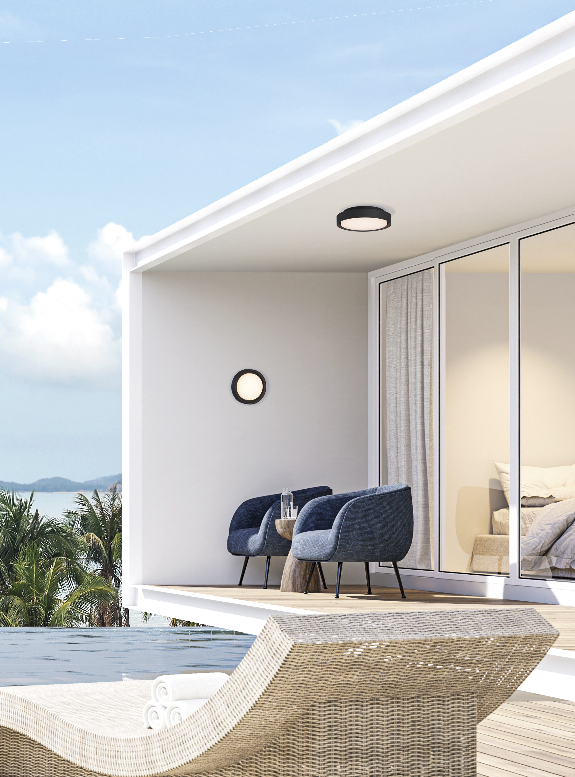 Dostępna w wykończeniu Textured Anthracite, lampa Kuma doskonale komponuje się z nowoczesnymi wnętrzami i fasadami. Jej szeroki kąt świecenia 110° gwarantuje równomierne rozproszenie światła. Klasa odporności na uderzenia IK 04 oraz niski współczynnik olśnienia UGR <21 podkreślają jej funkcjonalność i bezpieczeństwo. Plafon Kuma to połączenie estetyki i zaawansowanej technologii oświetleniowej.