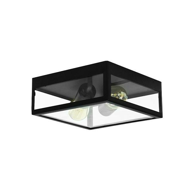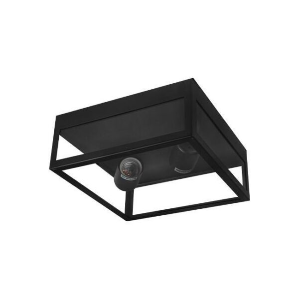 Nowoczesny plafon w formie kwadratowej ramy z hartowanego szkła i czarnej aluminiowej konstrukcji to eleganckie i trwałe rozwiązanie oświetleniowe.