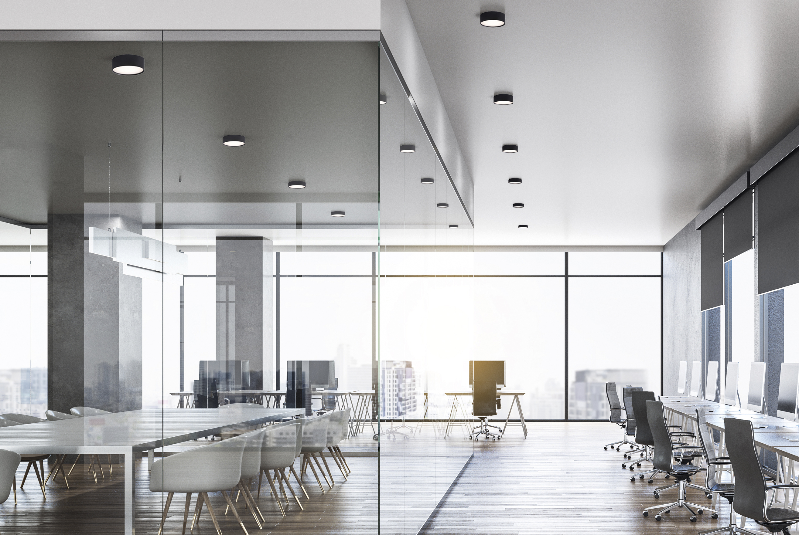 Większa oprawa sufitowa o średnicy 140 mm, wyposażona w moduł LED o mocy 18W i strumieniu świetlnym 1700 lm.