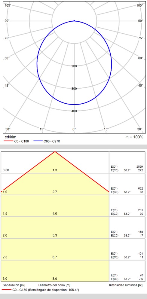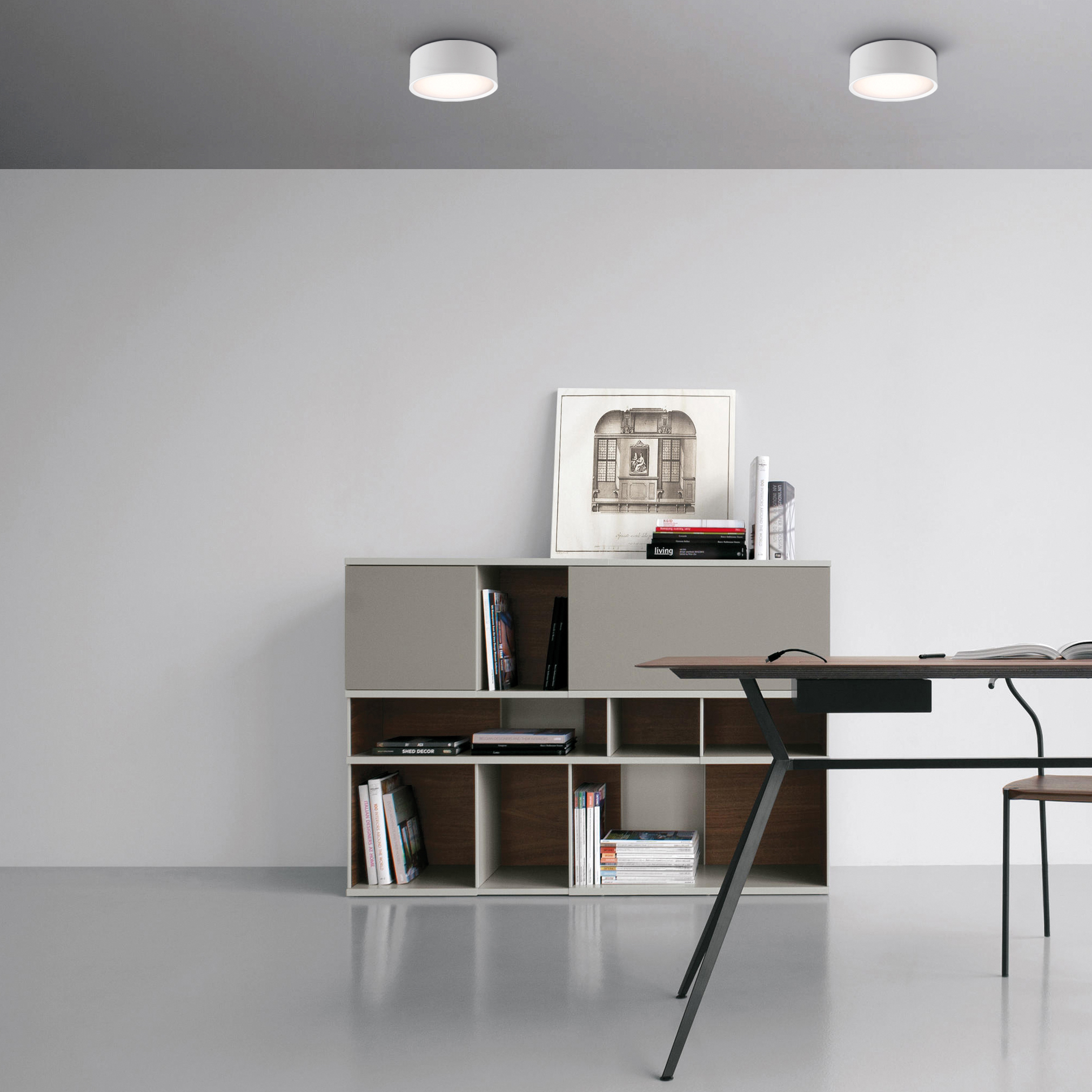 Kompaktowa oprawa sufitowa o średnicy 90 mm, wyposażona w moduł LED o mocy 6W i strumieniu świetlnym 500 lm.
