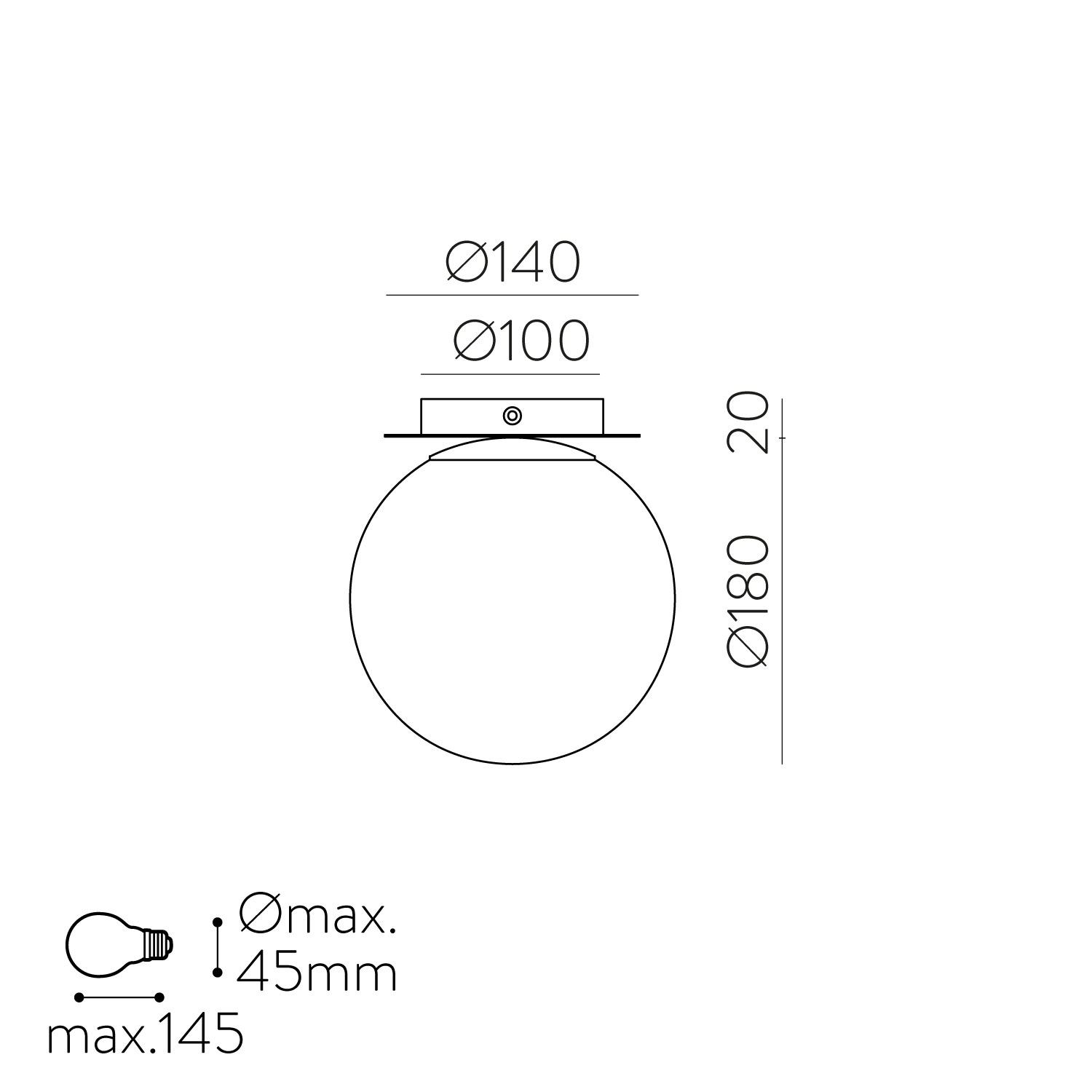 Parma Ceiling lamp 3946/18 IP Opal/Black Matt, LED E27 15W, CL.II IP44, (E27 max. Ř45 mm)