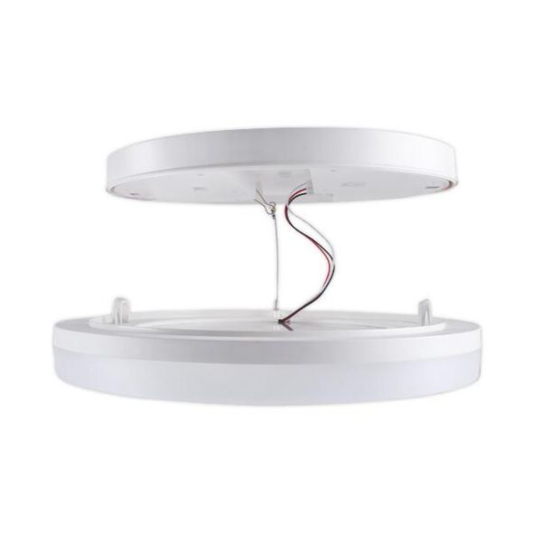 Funkcjonalny plafon LED o mocy 18W, wyposażony w mikrofalowy czujnik ruchu, który automatycznie aktywuje światło na 40 sekund po wykryciu obecności.