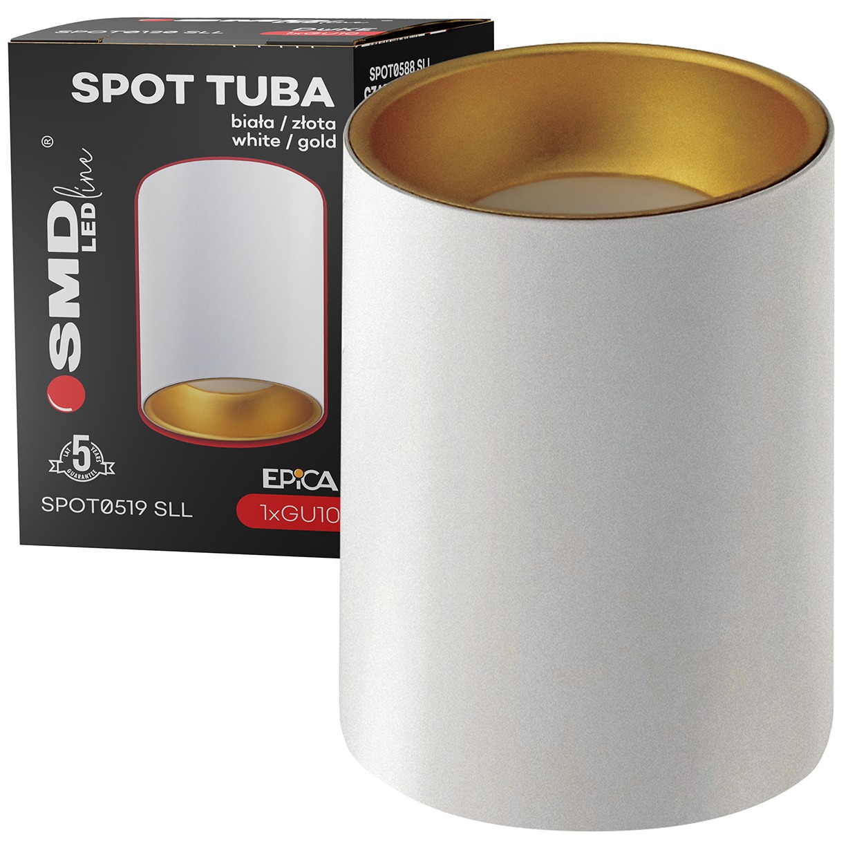 Spot tuba EPICA to propozycja dla osób ceniących nowoczesny minimalizm z nutą elegancji. Połączenie matowej bieli i złotego wnętrza sprawia, że oprawa staje się subtelną, a zarazem wyrafinowaną ozdobą każdego wnętrza.