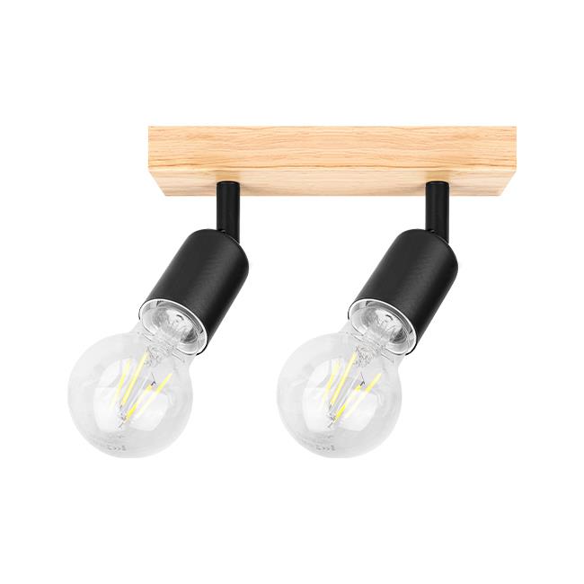 SPOT EOS 2xE27 to elegancka, minimalistyczna oprawa oświetleniowa, łącząca czarną stal (RAL9005) z naturalnym drewnem.