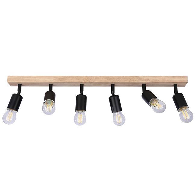 Nowoczesna lampa sufitowa łącząca elegancki, czarny design z naturalnym drewnem, doskonale wpisuje się w trendy industrialne oraz skandynawskie. Ta lampa wyposażona w sześć oprawek E27 pozwala na użycie energooszczędnych żarówek LED, które nie tylko oferują doskonałe oświetlenie, ale również znaczną oszczędność energii. W połączeniu z drewnianą podstawą o naturalnym wykończeniu, całość tworzy wyjątkowy, nowoczesny element wyposażenia wnętrz.